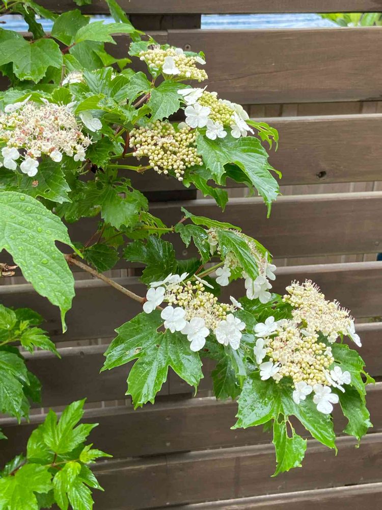 花はガクアジサイみたいに涼しげで、葉っぱの形もイイし。