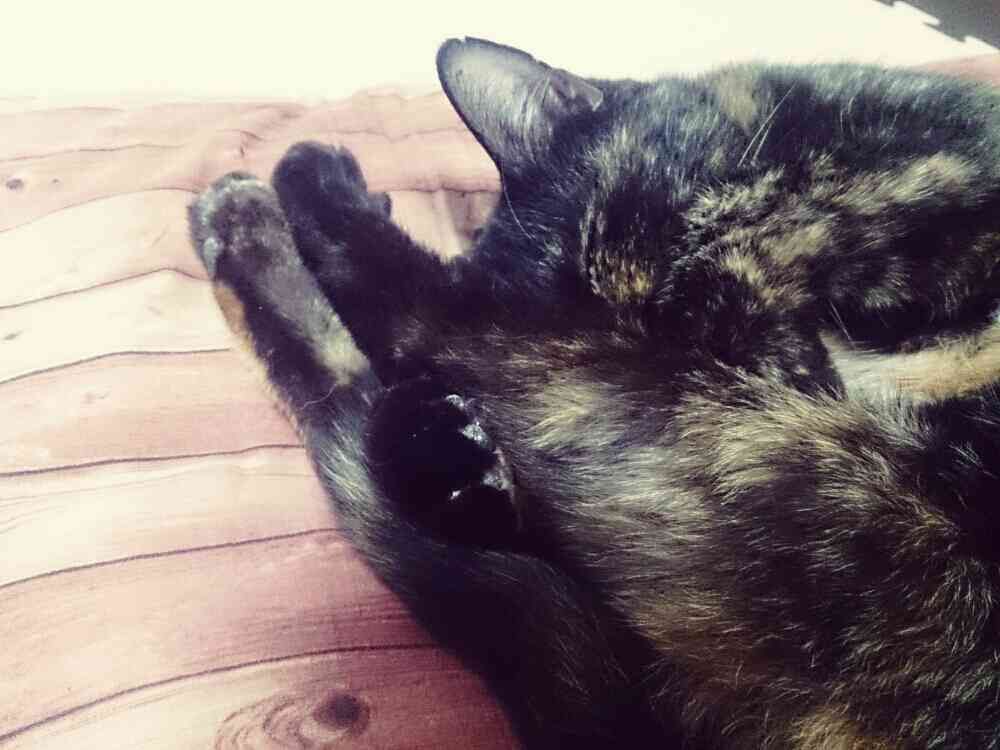 Uの字で寝ていて、Uの右先端が頭、左が足みたいな形で寝ています( ̄▽ ̄;)