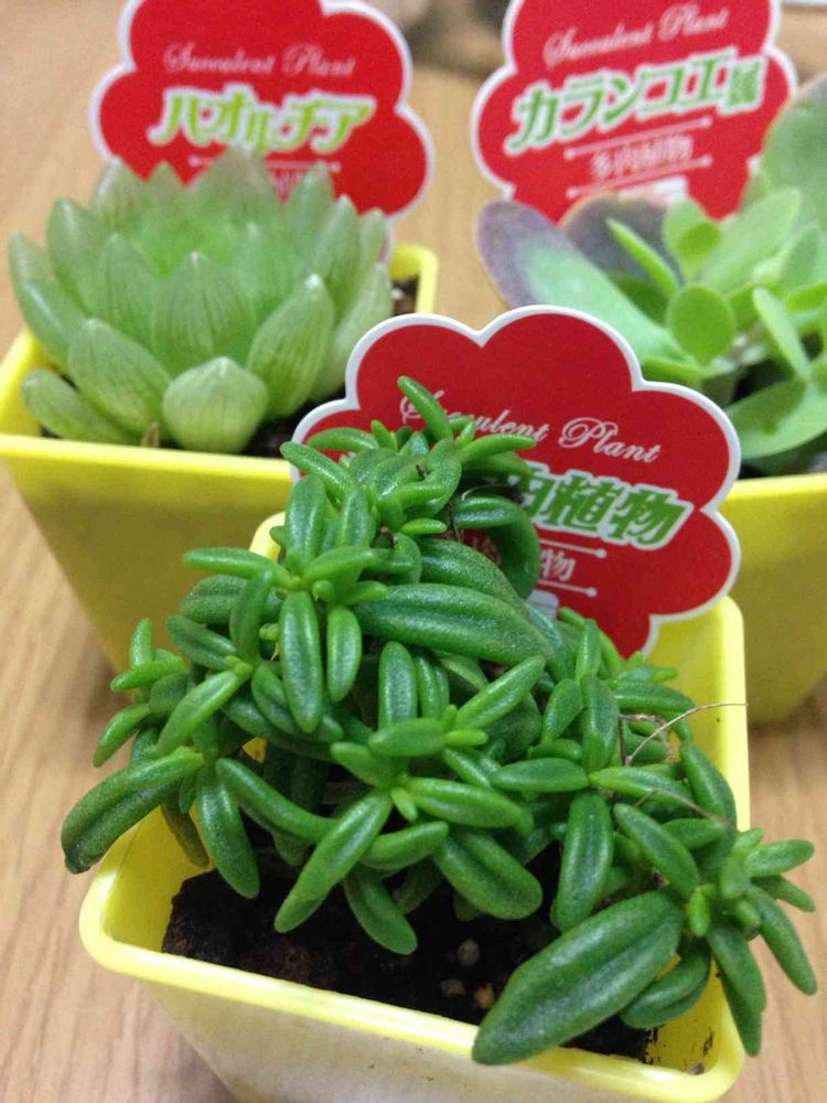 モナンテス属とてもかわいいですよー😍色々種類があるみたいですが、アナゲンシスが1番育てやすいらしいです(笑)私もずっと欲しくて初めて育てます。夏に弱いみたいですが今の時期なのにとても水を好むので、葉っぱにツヤがなくなって土が乾いていたらお水じゃぶじゃぶあげていいと思います!