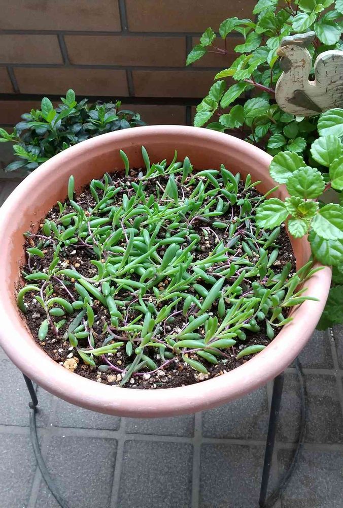 ルビネ丼💜カットした茎を空いている鉢にポイポイしていたら🌿根付いてしまっています。これ以上増えてもなぁ🤔
