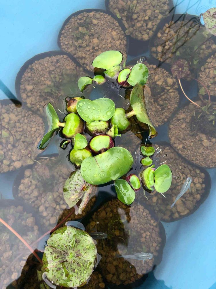 熱帯睡蓮ですかね?我が家の温帯睡蓮は 昨年ひとつも咲かず、今年は田んぼの土で 全部植え替えました。日当たりのいい場所を選んでいるつもりですが⁉️ホテイアオイはヒーター入りの水槽で2~3個冬越しして、その後は増える一方。秋までに相当数捨てています。今は20数個になり、邪魔な物はバケツに入れています。時々 針子がいるので注意です。(笑)