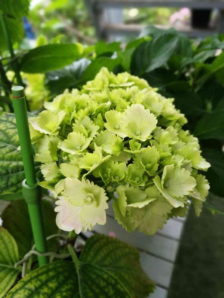 紫陽花 モナリザが咲きました。うっすらピンクが出ています🎵
