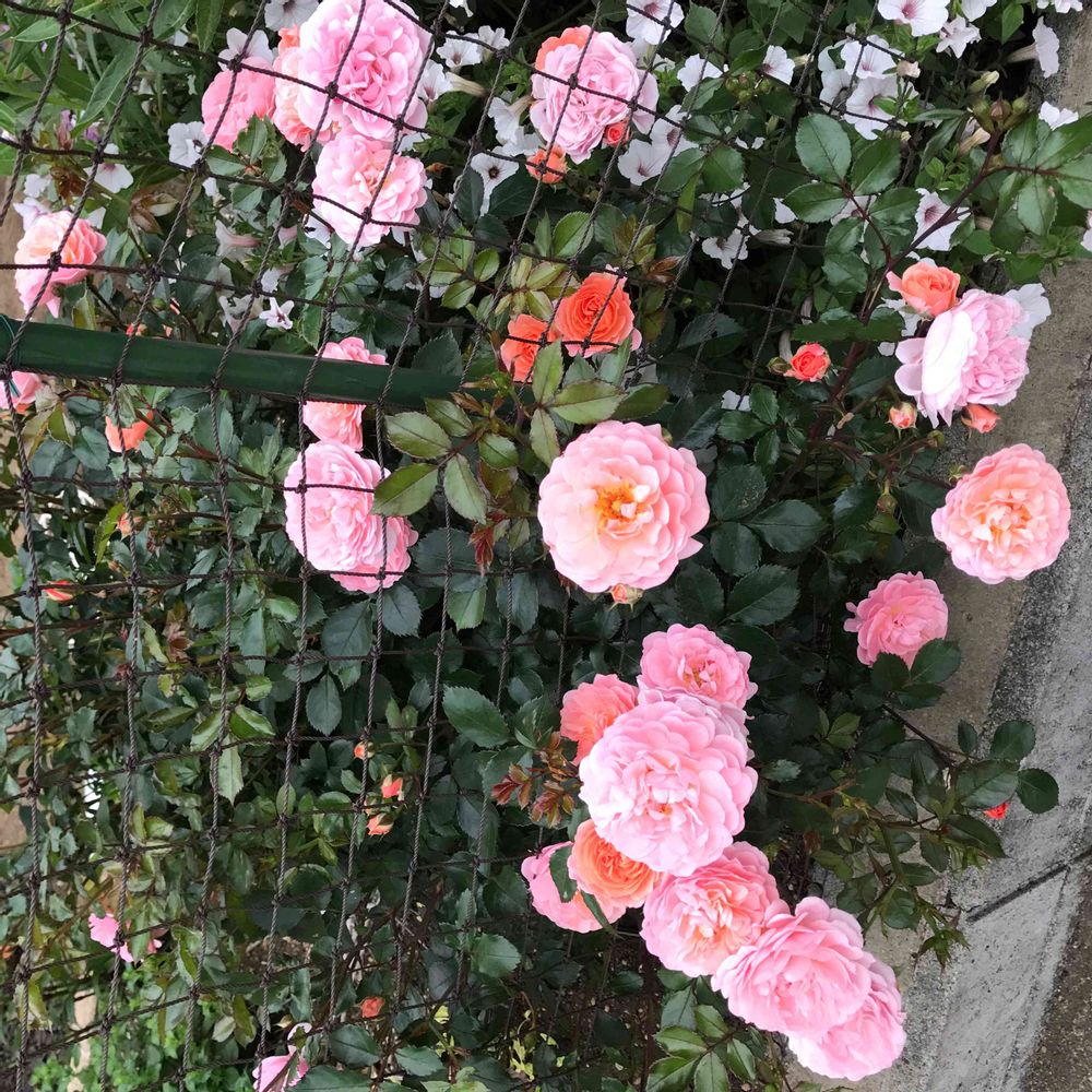 小さな庭,バラ アプリコットドリフト,スーパーチュニア ビスタ シルバーベリーの投稿画像
