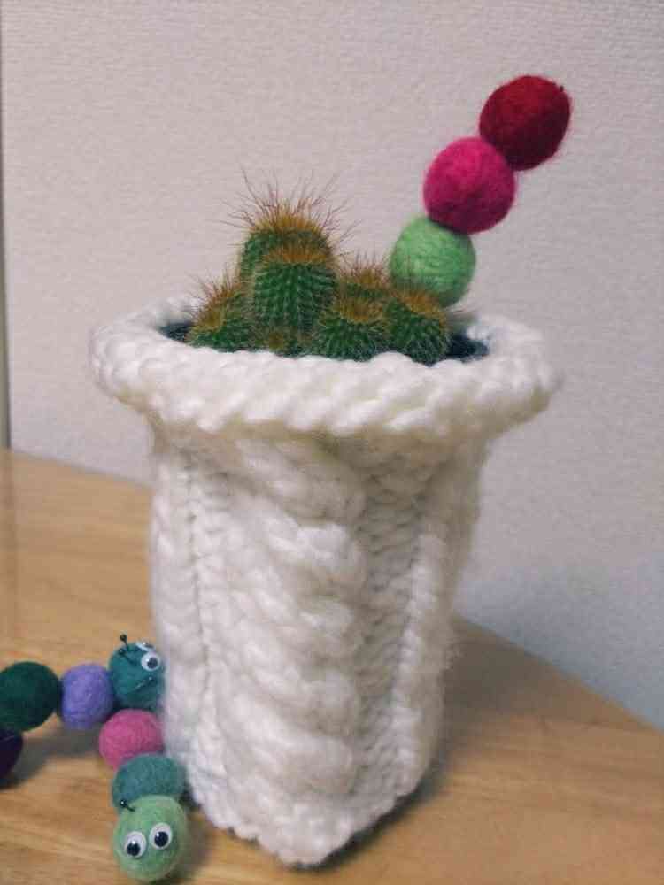 ここのとこの冷え込み対策に毛糸で鉢カバー編んでみました‼️