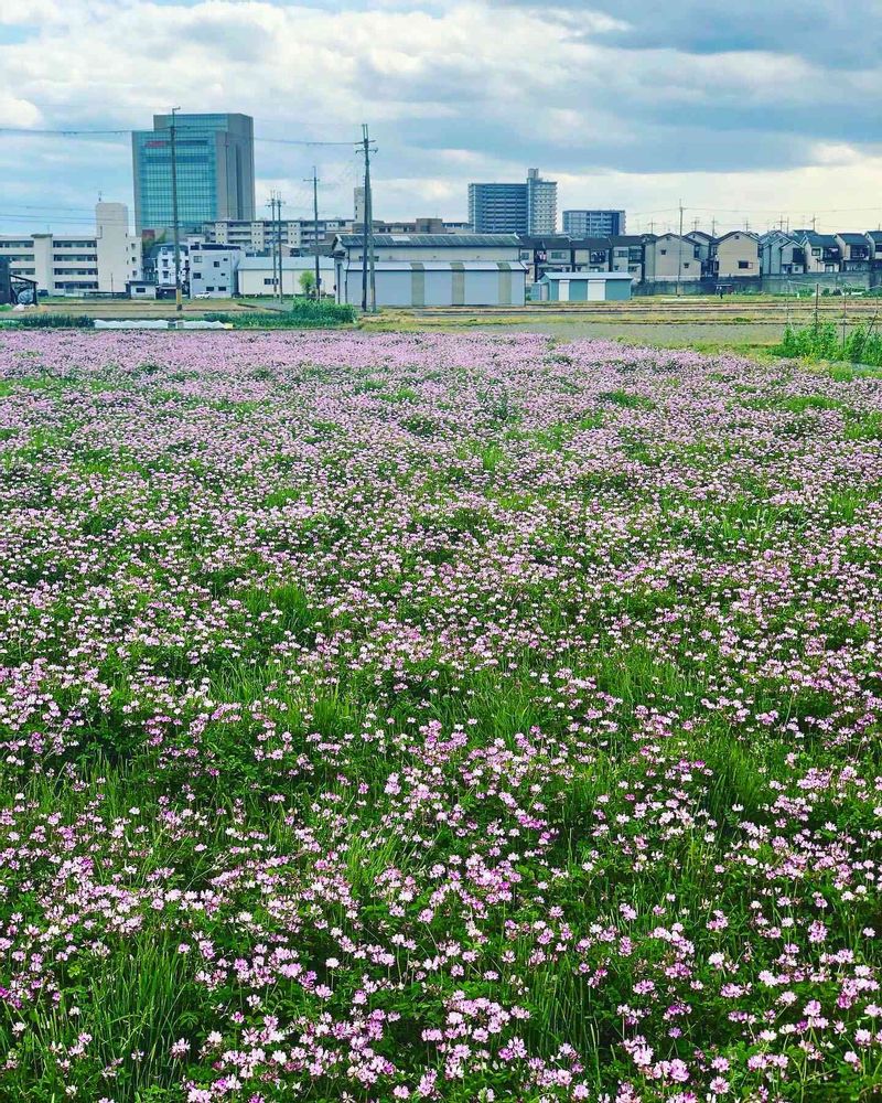 [@id:2177723] 田植え前の畑が紫色の絨毯みたいでした