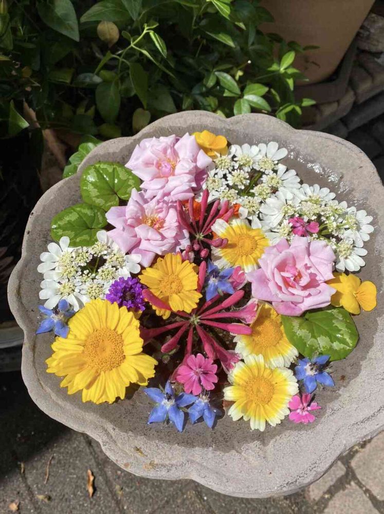 オープンガーデンに来てくれた友人が、わざわざ自分の家から持って来た花を浮かべてくれました💕私の家の花をとると、寂しくなっちゃうからって・・その気持ちが嬉しい😂
