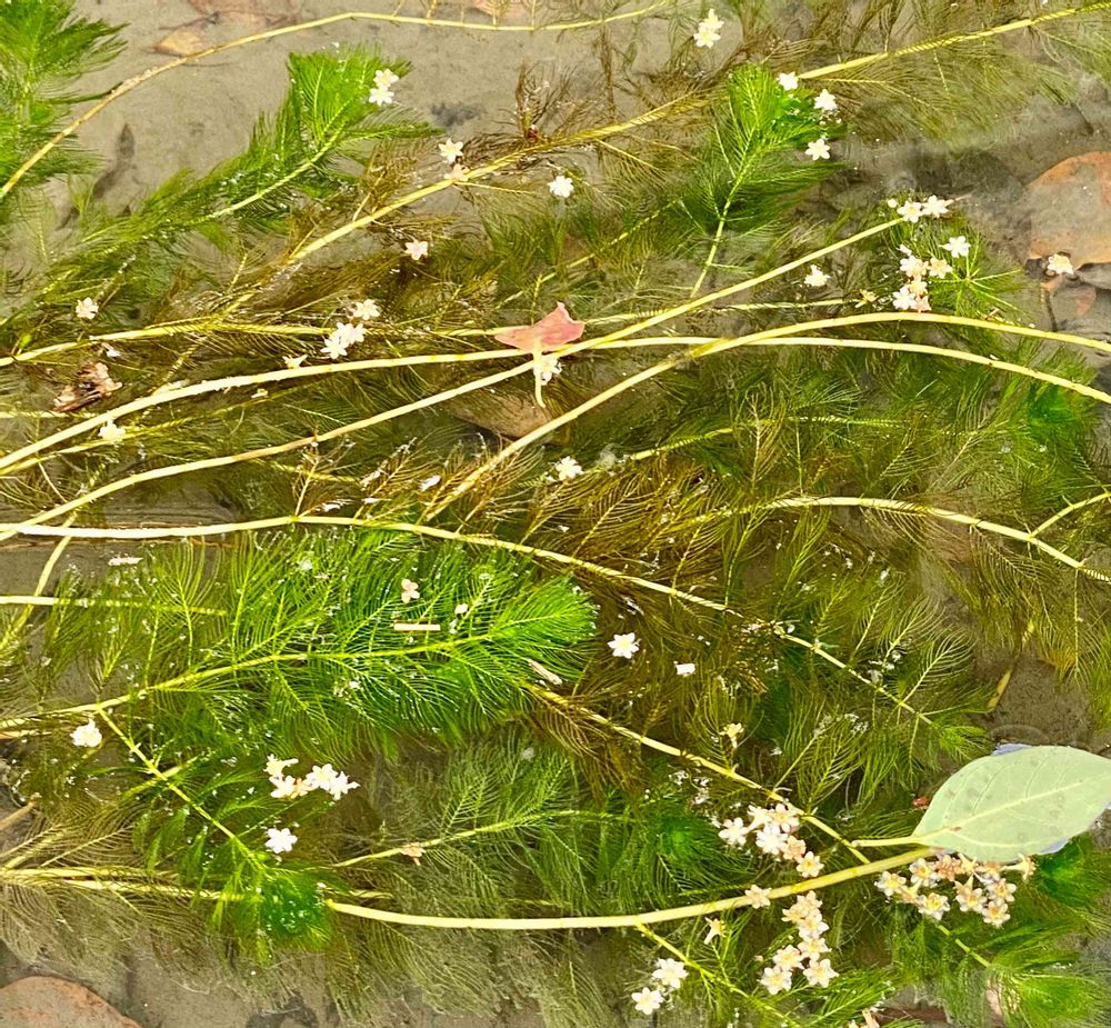 まさかこの地で絶滅した梅花藻復活!(最近、植物園で復活したらしい)と思ったら。。ハゴロモモの様です。花弁が六弁。梅花藻もより花が少し小さいです。