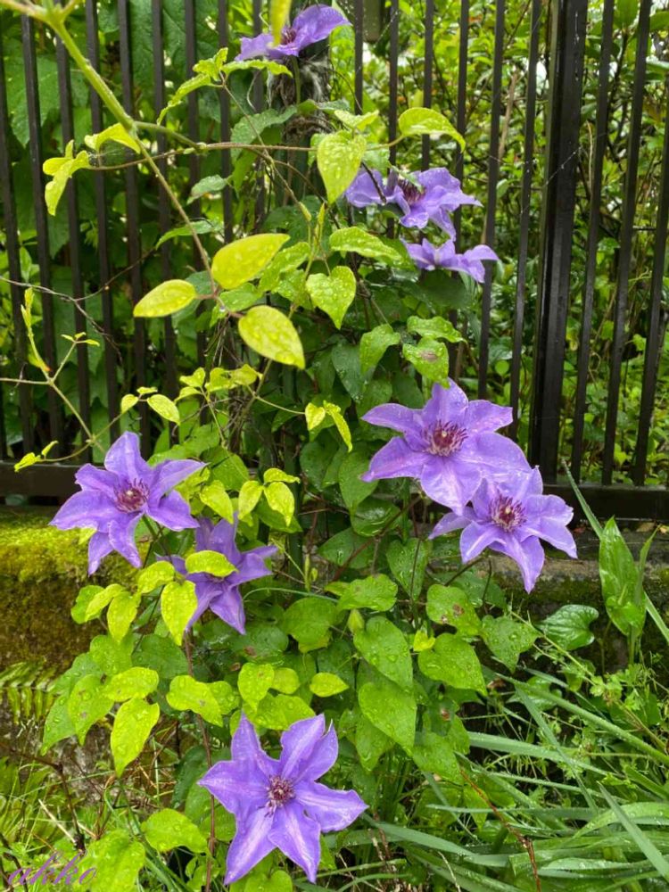 ご近所のクレマチスも、雨の中良く咲いています💙