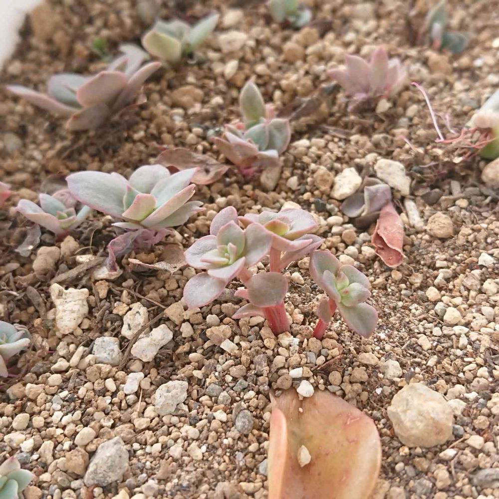 土、パッサパサで水分ないから強風で他の葉挿しも吹っ飛んで端っこの方で集会してたꉂꉂ(ˊᗜˋ)笑