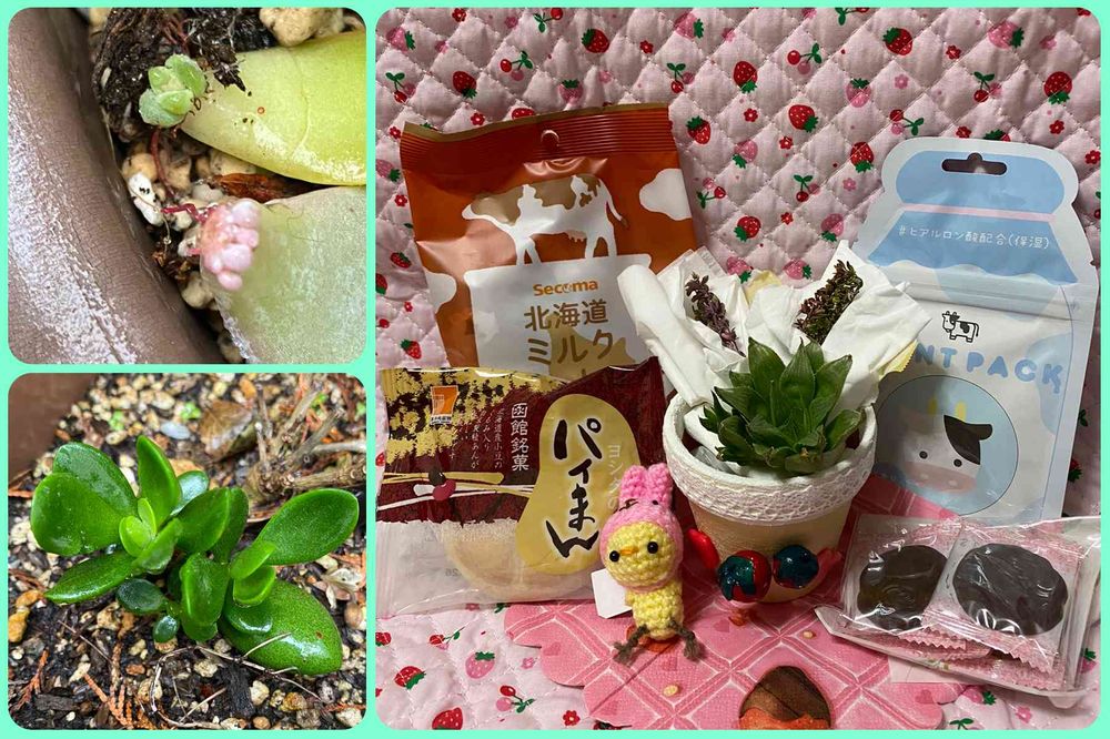 リメ鉢に当選したのですが、ハオルチアやタイム、お菓子やパーツシート(顔に貼るやーつ)