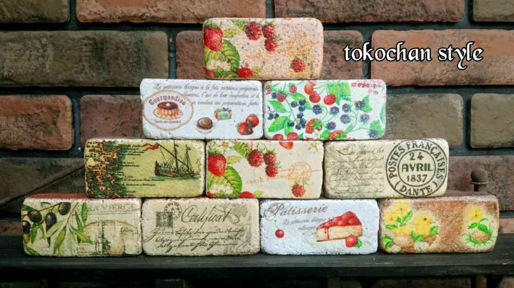 ピンコロレンガにデコパージュしましたぁ!通常サイズレンガもありだけど…手軽でかわいい…プレゼントにも喜ばれます!