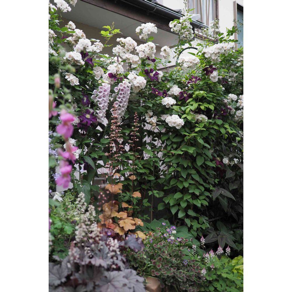 今日の雨で花弁が落ちてしまいましたが、蔓バラ・ペレニアルブラッシュが終わる前に何とか間に合ったワルシャワニキ(クレマチス)...