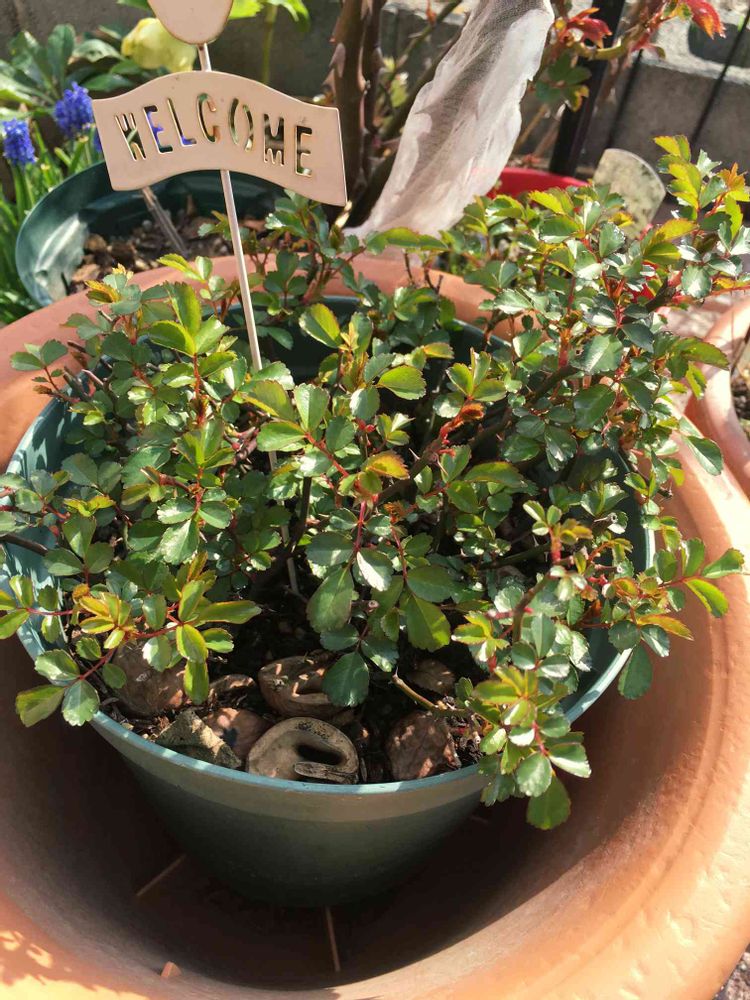 ミニ薔薇ちゃんも、新葉がモリモリしてきたよ。寒の戻りになったから、まだまだ蕾はおあずけね。薔薇のアーチの下にも鉢植えもちょこまか置いてます