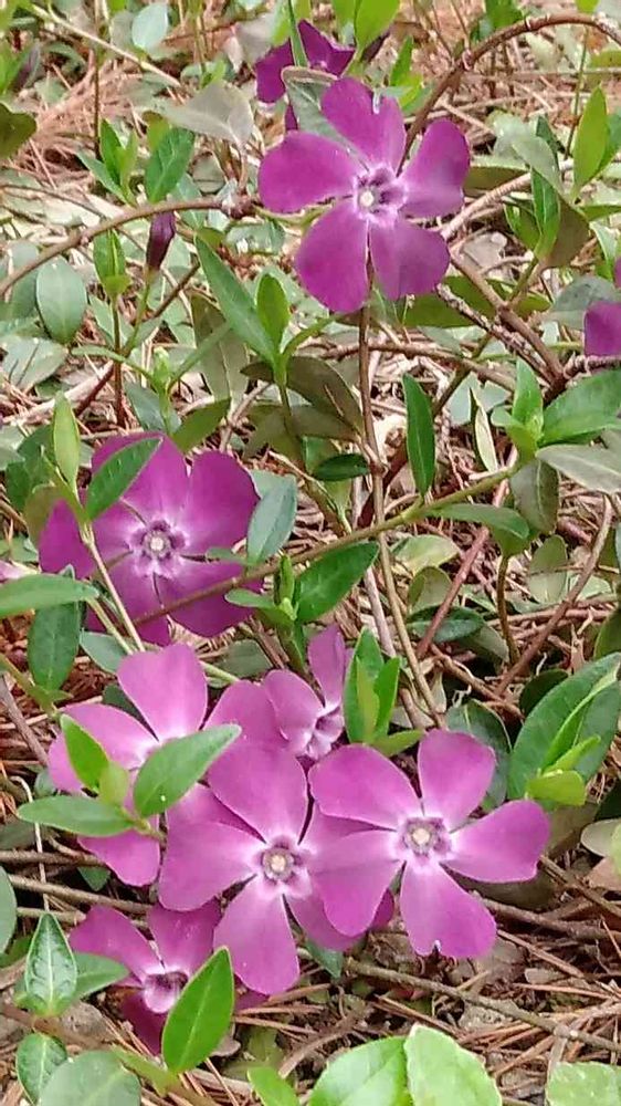 さん こんにちは!赤紫色でした!道路沿いのお庭のグランドカバーみたいに広がって…たくさん咲いていました!😃