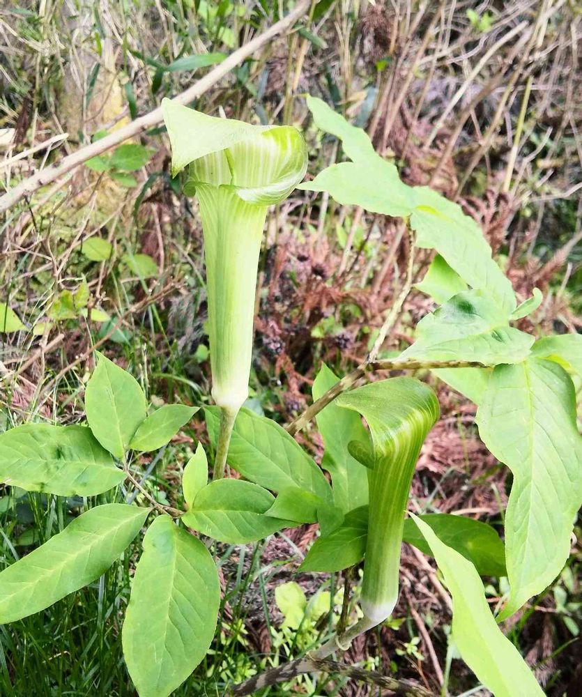 この種は総じて「サトイモ科テンナンショウ属」と言います🤗何種類かあって、みんな変わった形😅しててそれぞれ特徴がありますから面白いですよ🤗