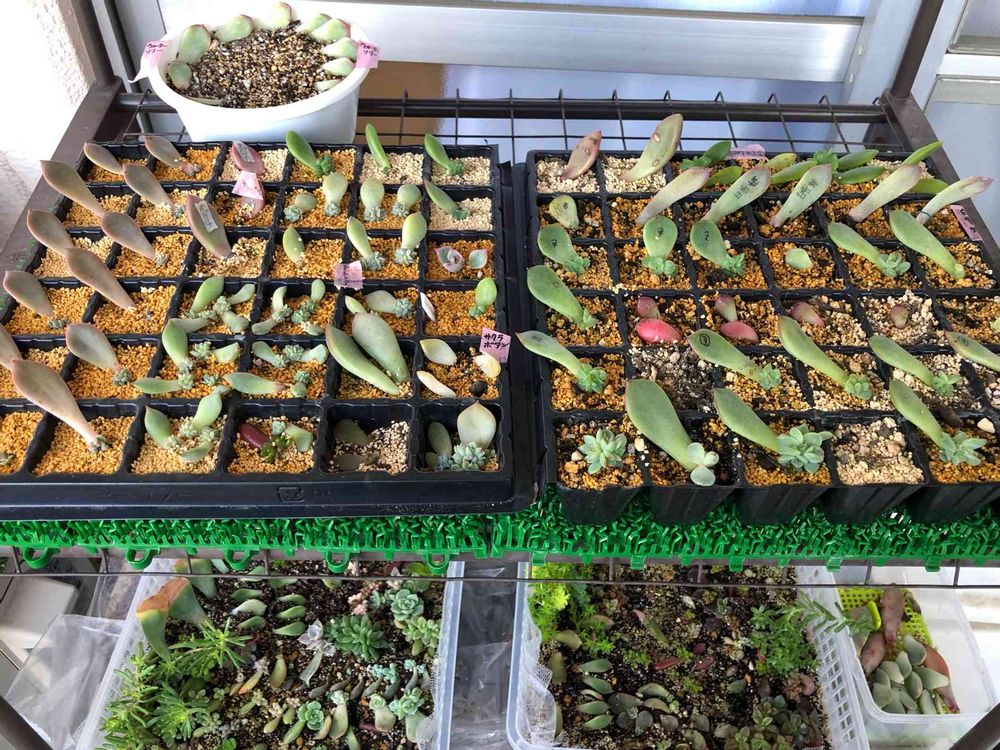 今年の目標が桃太郎さん増植計画だったんですが…😅もぎって葉挿ししてのエンドレスです💦鉢の周りも、お弁当箱も使える物全て葉挿し、もう場所がなーい‼️😱って感じです😅