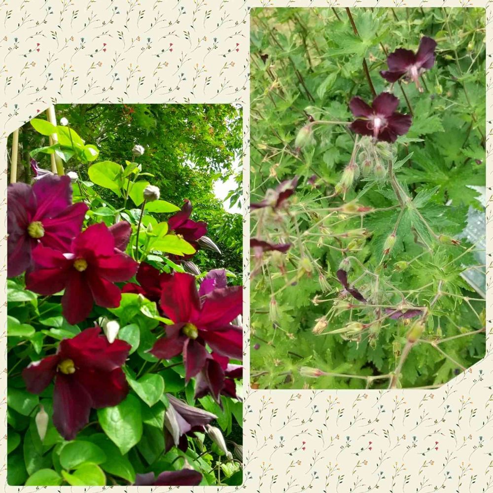 こんな濃い💜色のクレマチスもゼラニウムもステキですね。