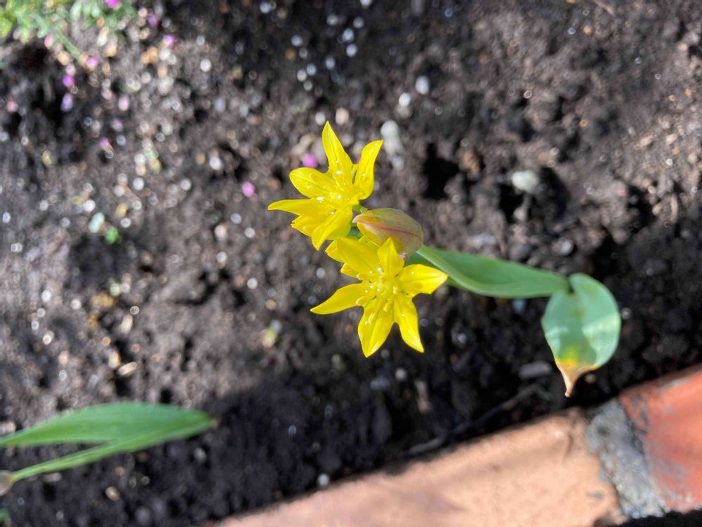 芽が出ないので諦めていたら、黄色い花が咲きました。