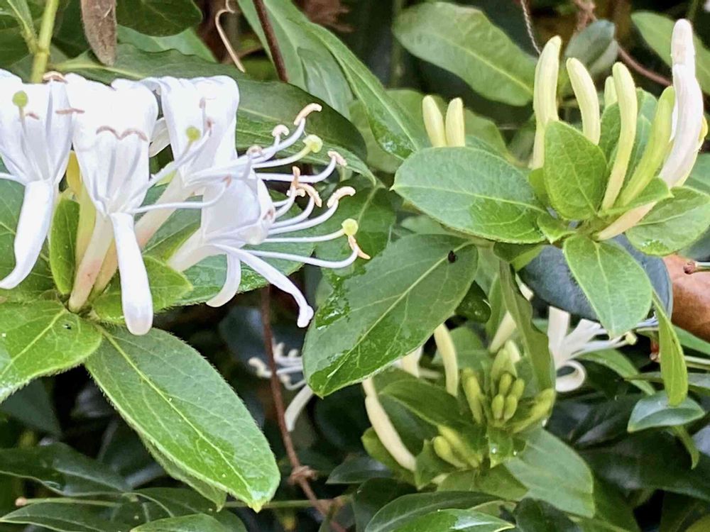 真っ白なハニーサックルとてもかわいいお花ですが、真っ白もあるんですね、可愛さに清楚な感じステキです✨💓
