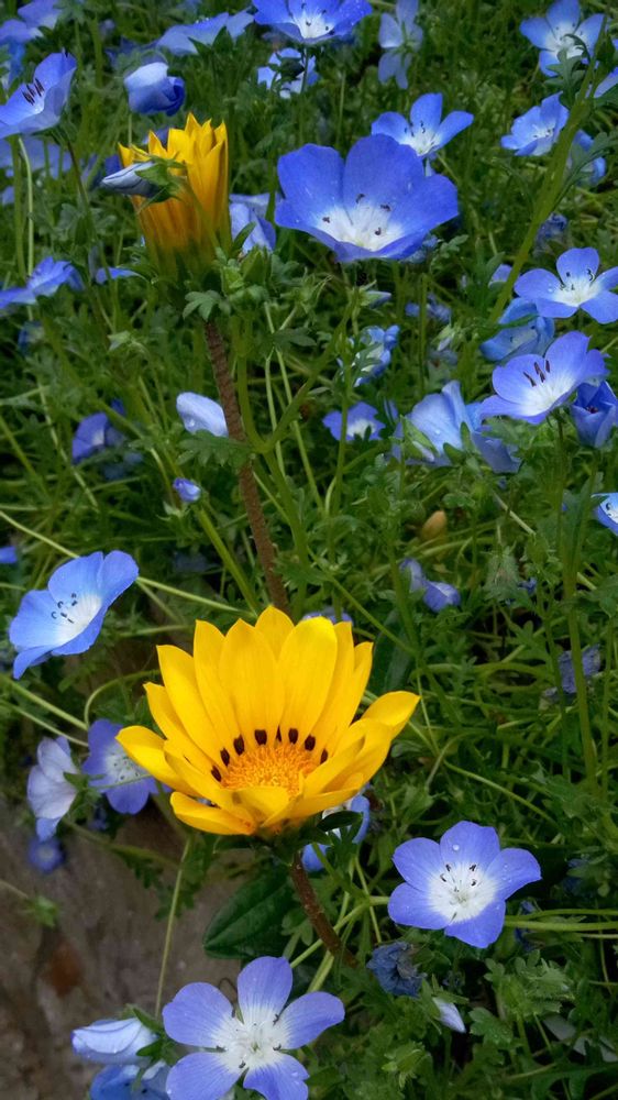 ビタミンカラーのガザニアと涼やかなネモフィラ がコラボしてました~(笑) 😆💕✨