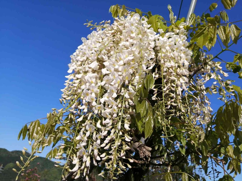 花木が好きな父は中でも藤が一番好きだったようです 色々な種類を植えてましたが今年は白い藤が青空に映えて綺麗に咲いてくれました😄🌸