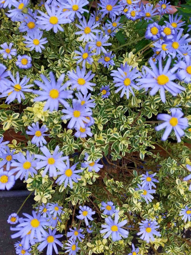 今日の犬🐩の散歩で、斑入りのブルーデージーさんに出会えました💕