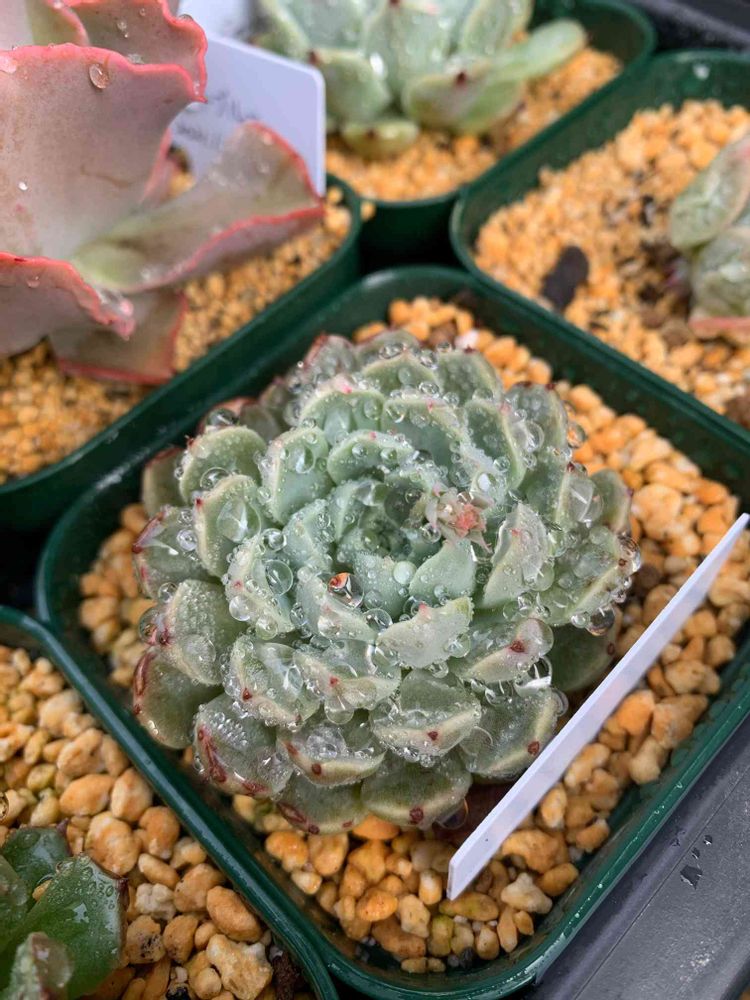 昨日は細かい粒の雨だったようで、雨を浴びた多肉達はキラキラ砂糖ががかったようでかわいい😋