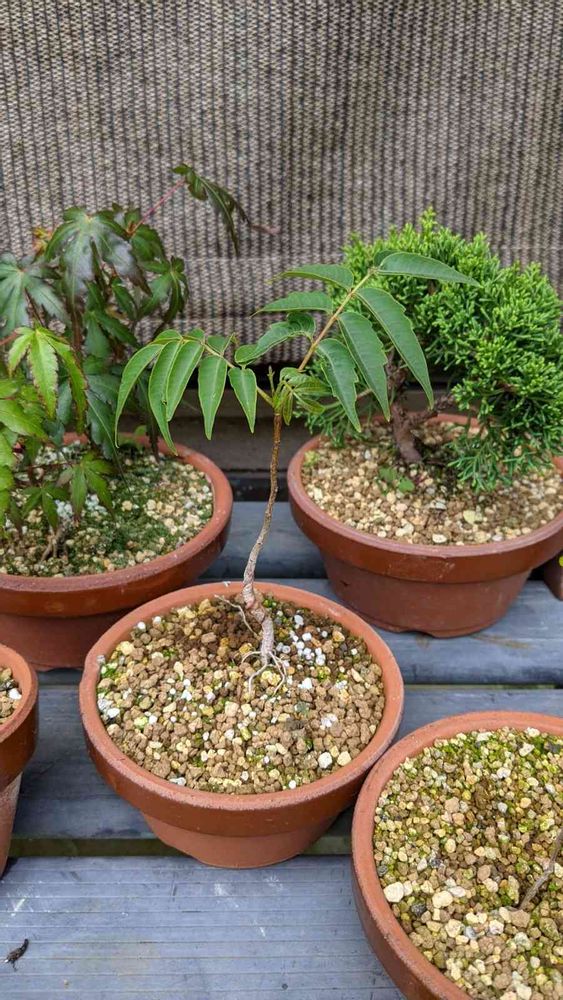 旦那が去年盆栽用に買ってきたハゼ(うるし)なんですが3本ある内でこの子だけきれいな葉っぱが出てきました。これからは私がお世話するのですがうるしなので素手だと手が荒れるみたいです。