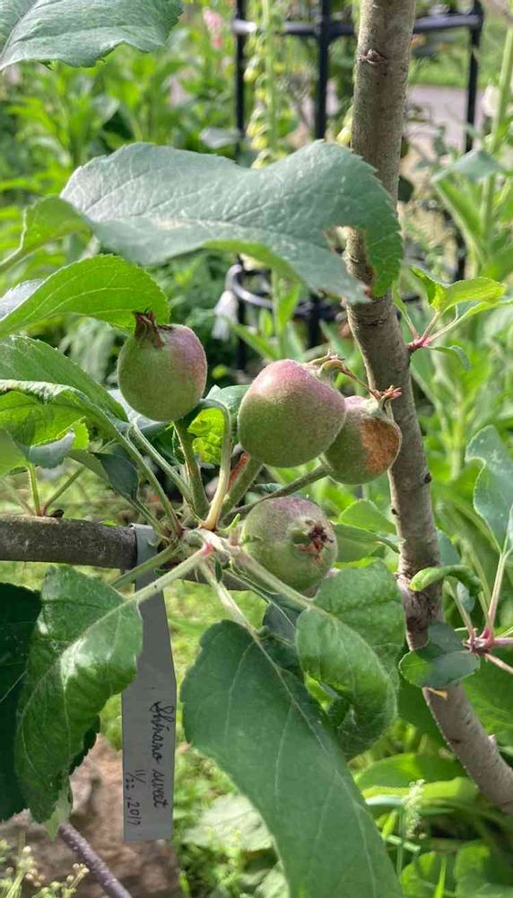 🍎 相方のフジが開花していなかった(青リンゴペアは共に開花)のに、結実してたのです。