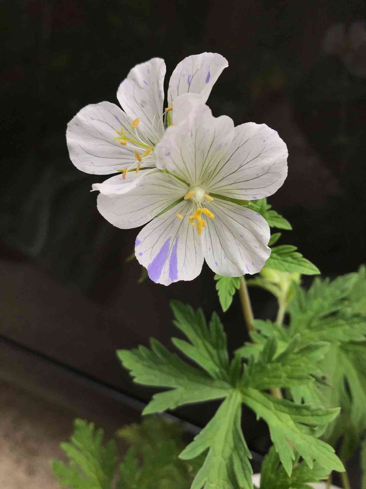 フウロソウの仲間です。名前をもうちょっと細かく言うと、スプリッシュスプラッシュです。我が家に来て2年目です。本当はもっと紫色が入る予定(単なる希望)でしたが、ほとんど白でした。花一つ一つの色が違うはずですので、他の花に期待します。