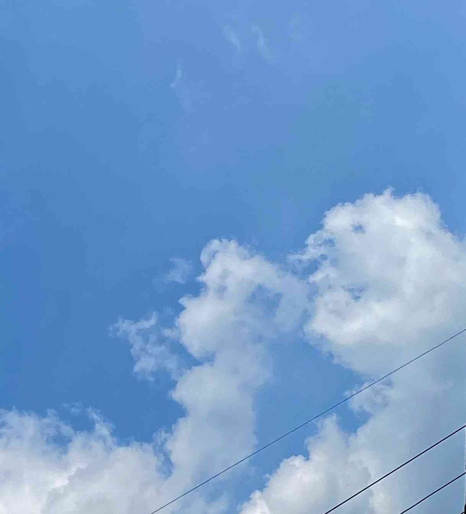 今日は暑かったですね。空も気持ちいいくらい青い😊人の顔と言われるとそれにしか見えません二人で並んでますね🤔何を見てるのでしょう❓