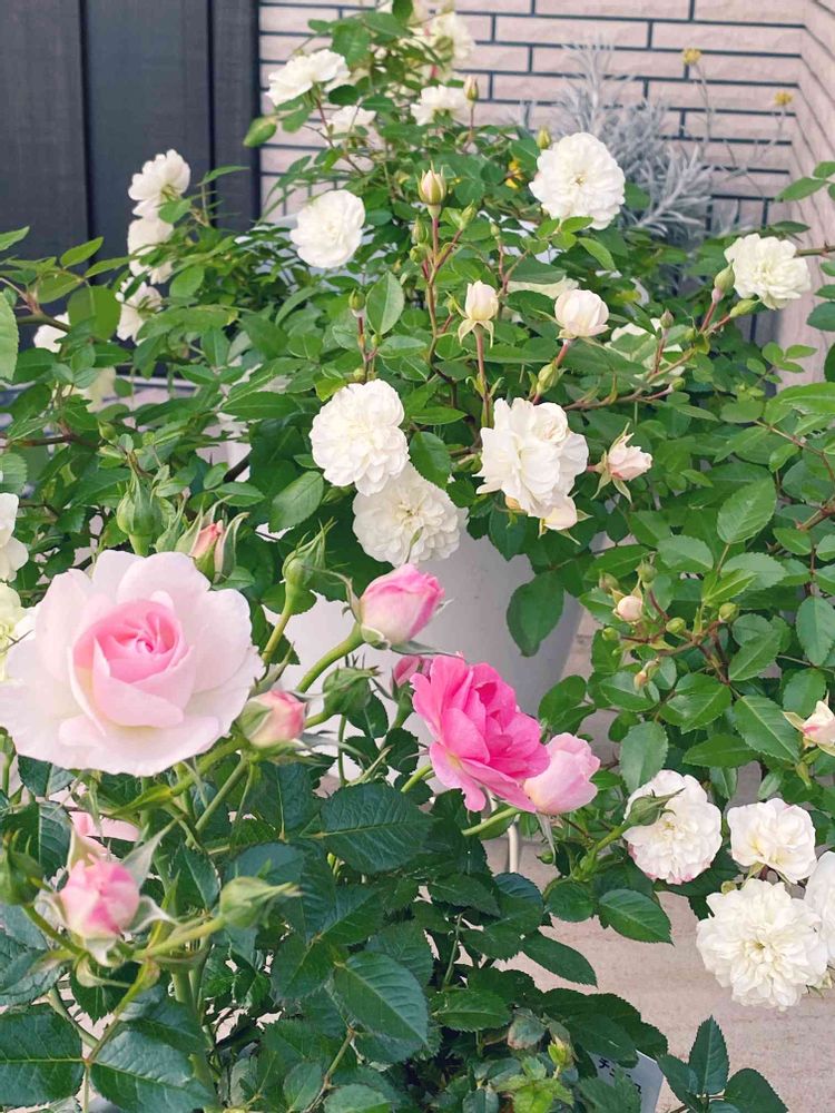 モリモリに育ったツヤのある葉っぱに可愛らしいミニ薔薇が映えてますね〜😍🌹✨