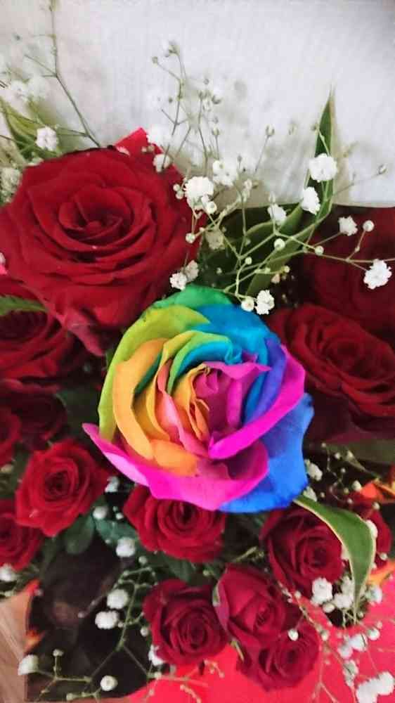 うちにもレインボーローズが来た時GSにアップして、みほっこさんに教えていただきました😊