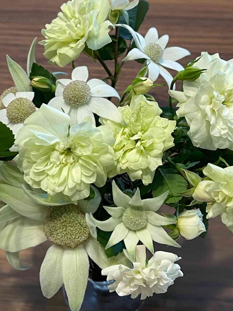 グリーンアイスとフランネルフラワーの色合いが似ていて、とっても爽やかですね(⑅•͈ᴗ•͈).:*♡
