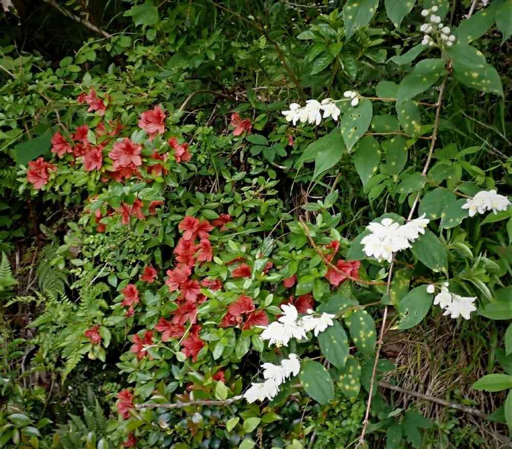 赤と白 山ツツジとウツギ