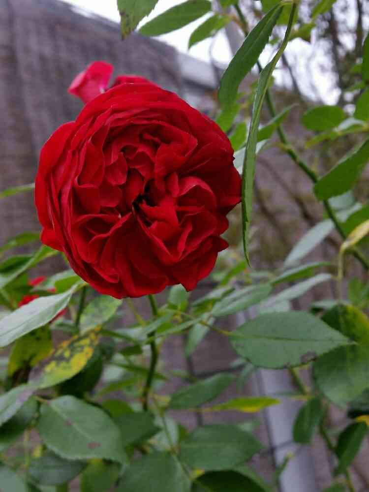 秋の長雨で黒星も少し出ましたがあまり広がらずにポンポンと開花。咲きたては明るい赤でしたが、終盤に差し掛かってのこの深い色(*´-`)❤いい!