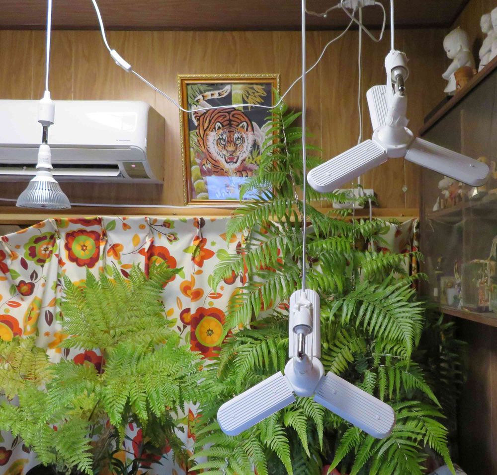 ちょっと照明の配置を変えたので、部屋の照明事情を明かします。ゴールデンボバインには3灯照明を2つ当てることにしました。変わってカツモウイノデにはピンク系の照明を1灯当てます。これでバランスが取れると思います。