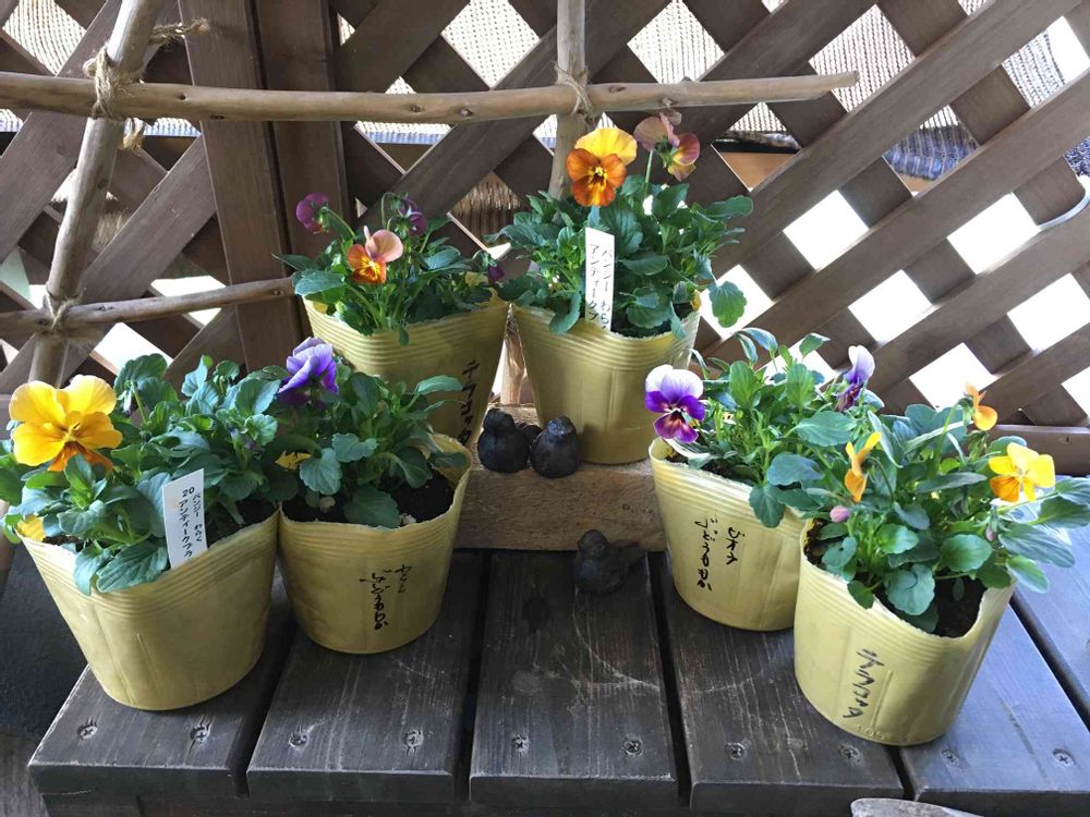 ちょっと前に購入したビターアメジスト1鉢を加えて、今年はパンジー、ビオラ合計7鉢で楽しみます。