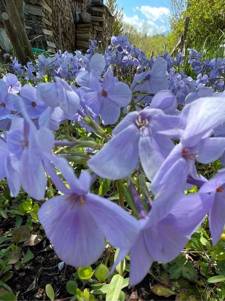 薪小屋のある庭から空き地へ這いだしていて、この季節ならではの画角の写真になった。這性があるので一面広がっていても、楚楚として風趣がある。やはり青みのある薄紫色は人気があるらしく、上品な感じが高原に合っているのだろう。