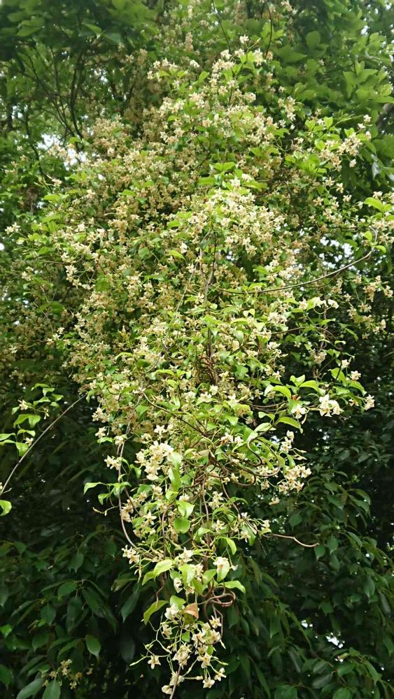 満開のテイカカズラの花が滝のようです。🤗🎵
