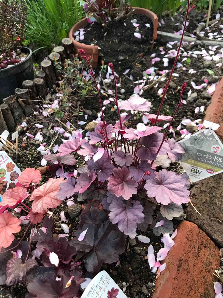 ヒューケラは我が家は全て鉢植えだけど地植えは魅力的ですね♫