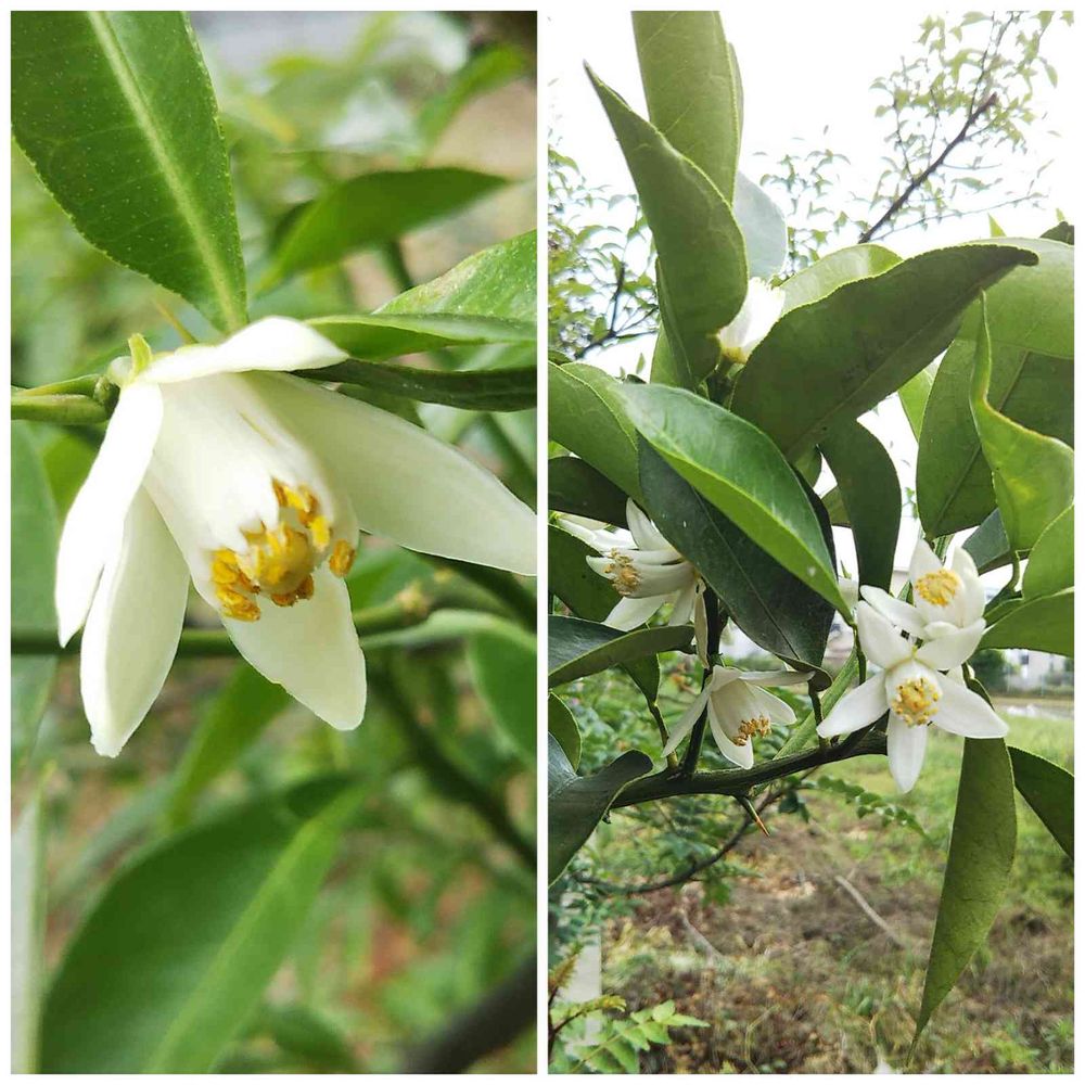 柚子の花が咲いています。