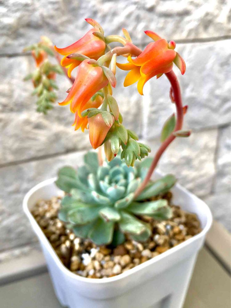 うちのエケベリア一族は、まず黄色達が咲いて、次に赤みがかった花が咲く順番だとわかりました。🥰