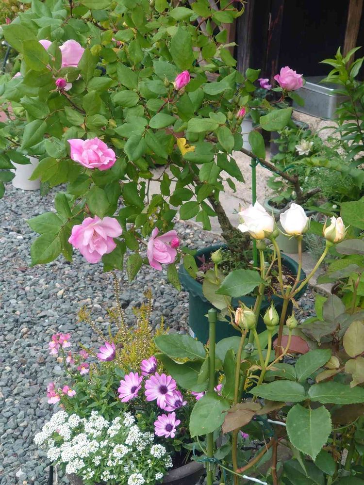 一重のバラもポチポチ咲いてきました!他の鉢とコラボで楽しみな季節ですね!!
