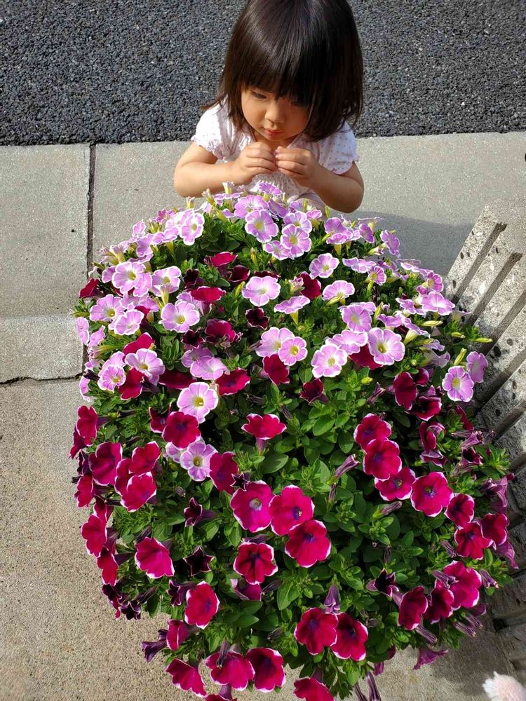 いつもお花に囲まれ成長する お嬢ちゃんはお花のような気持ちの優しい女性になるでしょうね😊かわいい(*´﹀`*).。o(♡)