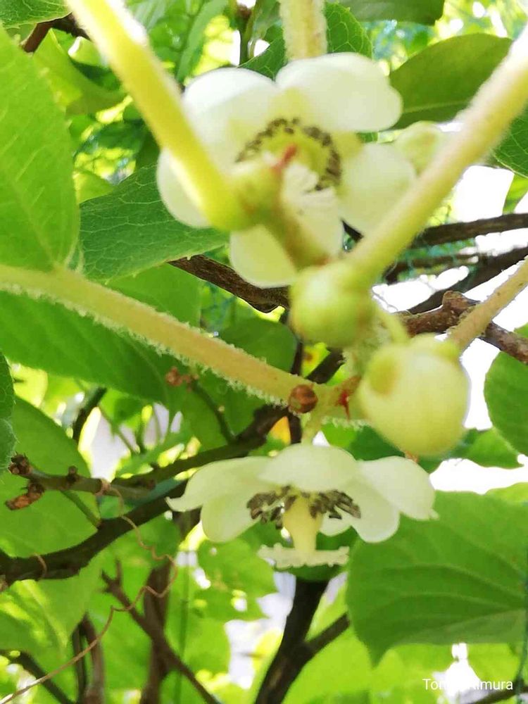 小さな庭のサルナシの花が咲きました。
