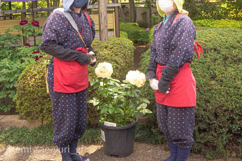 たまたま近くにいた、ぼたん園の職員さんにお願いして撮らせてもらいました