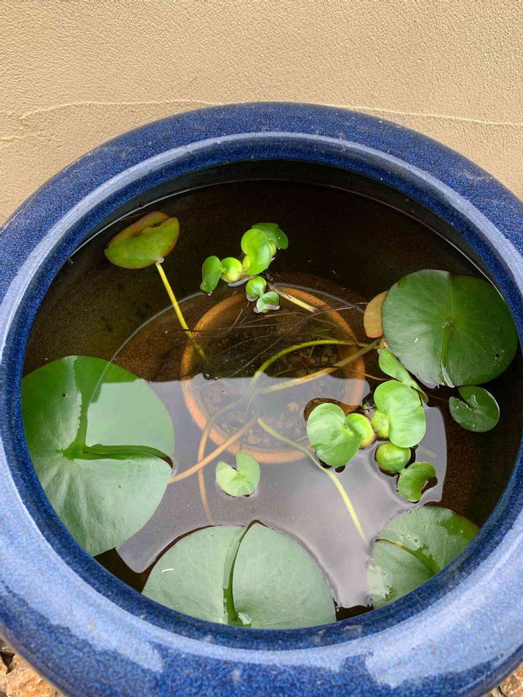 睡蓮は、去年株分けして赤玉土だけですが、大きくなりました😊