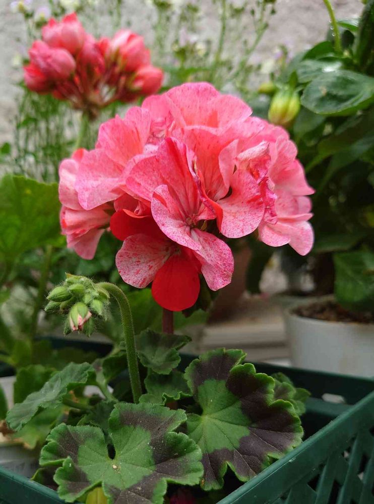 我が家にも ゼラニウムがたくさん咲いてますが この斑入りの花は初めてで 速仲間入りしました❗😂