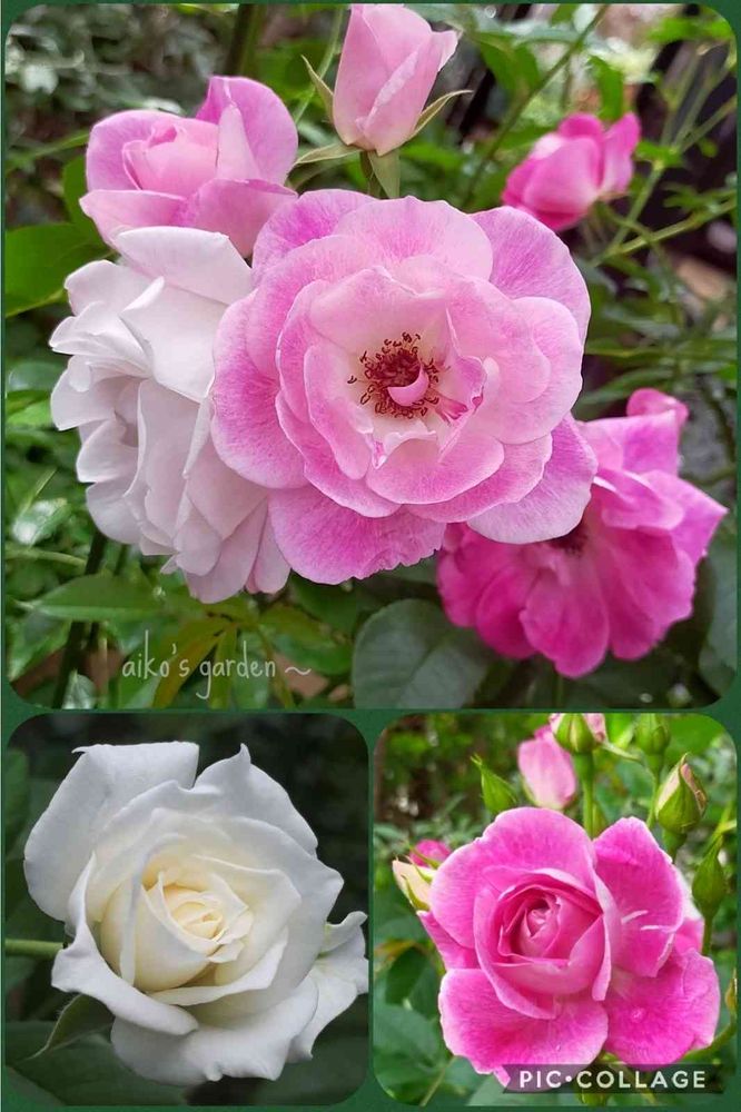 濃淡のピンク色や白と楽しめ房咲きで可愛らしいバラですね💕